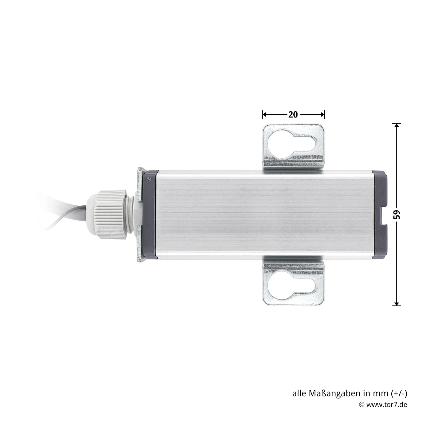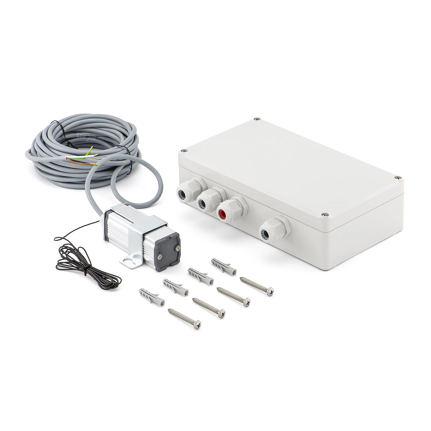 - separate Antenne im sabotagesicheren Alu-Gehäuse (Schutzart: IP 65) mit 7 m Anschlussleitung, 3-adrig