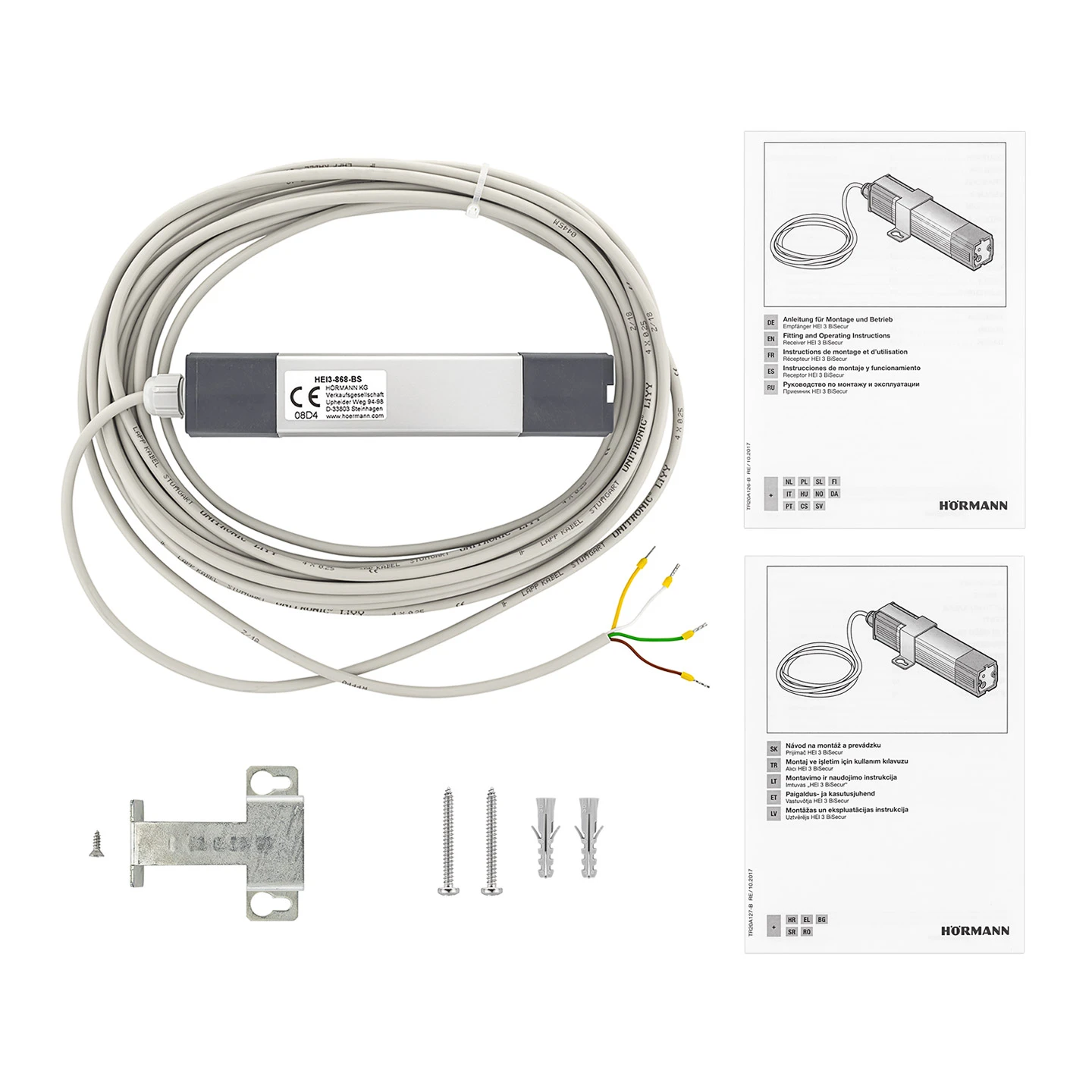 - 1 x Hörmann 3-Kanal-Empfänger HEI 3 868-BS mit Anschlussleitung