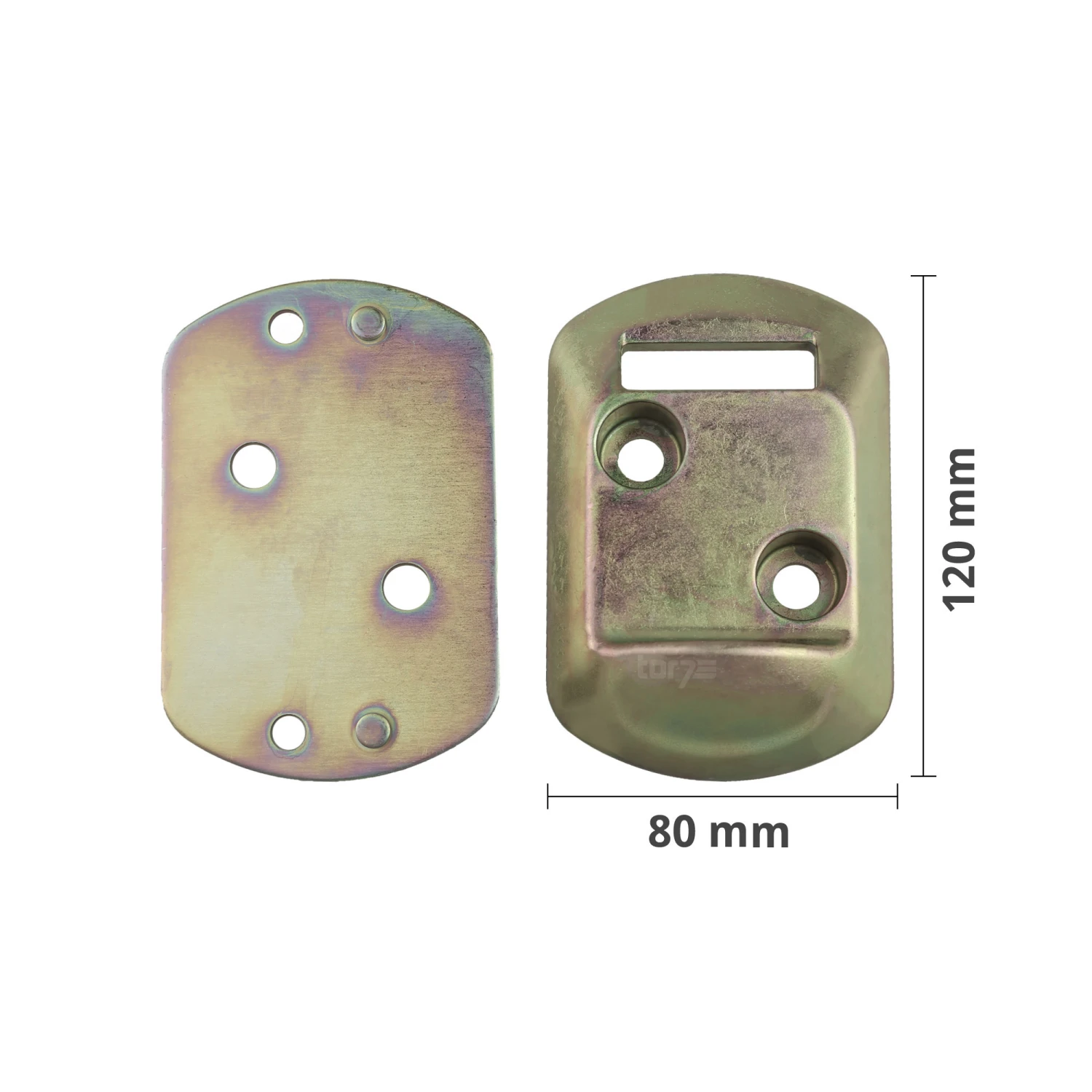 Die Höhe der Auflauffläche liegt bei 25 mm, der höchste Punkt des Anschlags beträgt 40 mm, die Länge 120 mm und die Breite 80 mm. Der Auflaufbock wird am Boden unter dem Flügel und unter dem Elektroschloss angebracht. Um den Auflaufbock höher zu legen, eignen sich spezielle Unterlegplatten, die ebenfalls für die Arretierung erhältlich sind. Sie haben jeweils eine Höhe von 3 mm und können als Hörmann Unterlegplatten-Set für Auflaufbock unter der Artikelnummer 438774 erworben werden.