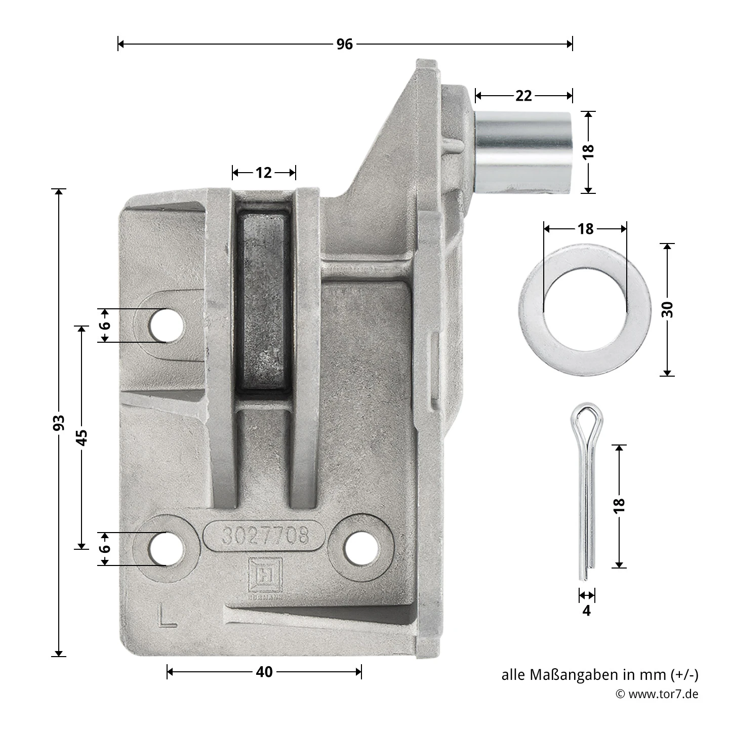 Das Hörmann Aufsetzstück links eignet sich speziell für Hörmann Industrie-Sektionaltore der Baureihe 20 mit Produktionszeitraum ab 25.08.1986 bis 07.07.1992, die mit einem N-Beschlag ausgestattet sind. Bei diesen Torausführungen mit Normal-Beschlag befindet sich die Torsionsfederwelle oberhalb des Tores und sorgt dort für einen verlässlichen Gewichtsausgleich. Das Aufsetzstück sitzt hierbei unten links an der Bodensektion und ist mit der notwendigen Aufnahme für die Seilkausche ausgestattet. Daher ist auch dieses Bauteil eine wichtige Komponente für einen ordnungsgemäßen Gewichtsausgleich und somit für die Betriebssicherheit der Toranlage. Prüfen Sie daher bei der intervallmäßigen Prüfung auch die Aufsetzstücke und die Seilaufnahme auf Beschädigungen oder Korrosionsansätze. Bei festgestellten Mängeln kann ein Austausch gegen dieses passgenaue Ersatzteil erfolgen. Die Befestigung erfolgt mit der Hörmann Sechskant-Blechschraube, A 6,5 x 20 mm.