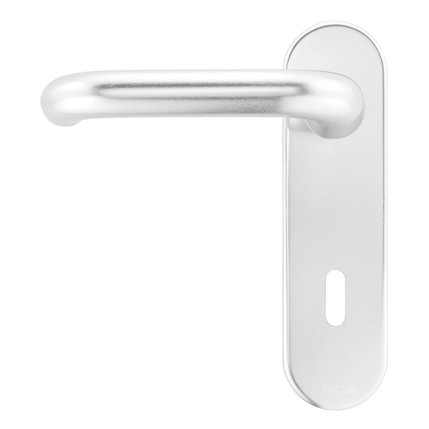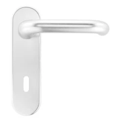 Die Hörmann Drückergarnitur vom Typ D110 mit Kurzschild und Buntbart-Lochung ist aus widerstandsfähigem Aluminium gefertigt und eignet sich für Hörmann Innentüren der Ausführung ZK oder OIT. Auch an Fremdfabrikaten mit Kurzschild kann diese Garnitur als Ersatz problemlos montiert werden. Sämtliches Montagematerial, eine Bohrschablone sowie ein 8 mm Vierkantstift sind im Lieferumfang enthalten und ermöglichen den sofortigen Austausch. Zu beachten ist hierbei, dass die BB-Lochung nur die Bedienung mit einem Buntbartschlüssel erlaubt. Die Nutzung mit Profilzylinder ist nicht möglich. Hierfür ist die entsprechende Garnitur mit PZ-Lochung auszuwählen.