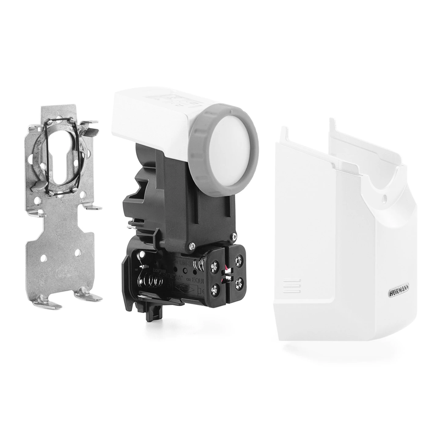 Mit dem Hörmann Funk-Türschlossantrieb SmartKey lässt sich das Schloss einer Tür mit einem geeigneten Sender per Funk verriegeln, entriegeln und öffnen. Dabei wird der von innen steckende Schlüssel mit einem batteriebetriebenen Motor bewegt. Geeignete Handsender sind die 4-Tasten-Handsender HSE 4-SK-BS oder Sicherungs-Handsender HSSE 4-SK. Es können max. 100 Funkcodes übertragen und auf die vorhandenen Kanäle aufgeteilt werden. Der nachrüstbare Antrieb wurde vorrangig für Wohnungs-, Haus- und Nebeneingangstüren entwickelt, kann aber auch an Hörmann Multifunktionstüren aus Stahlblech verwendet werden.