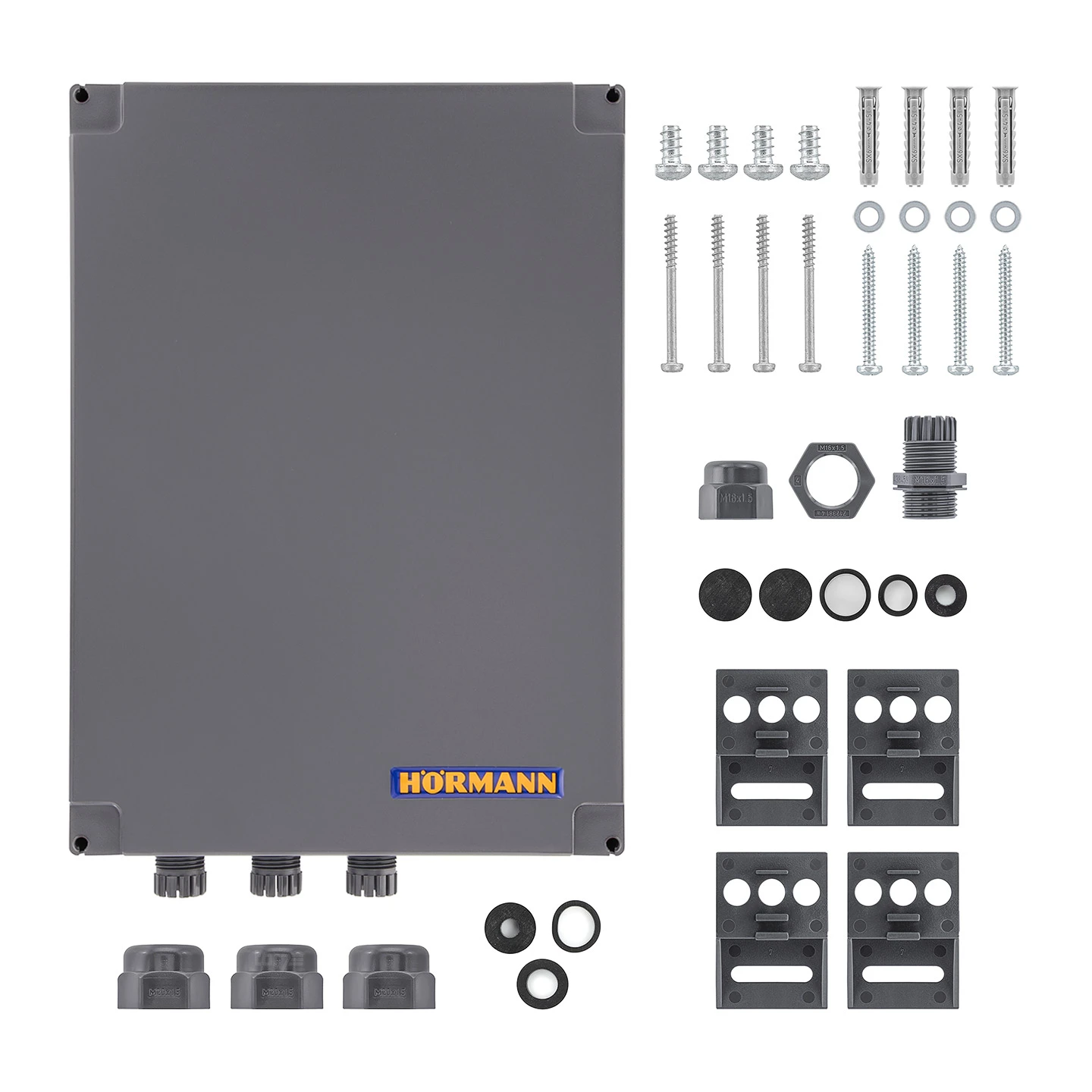- 1 x Hörmann Steuerung RotaMatic mit integriertem BiSecur-Empfänger (Funkstandard 868-BS)