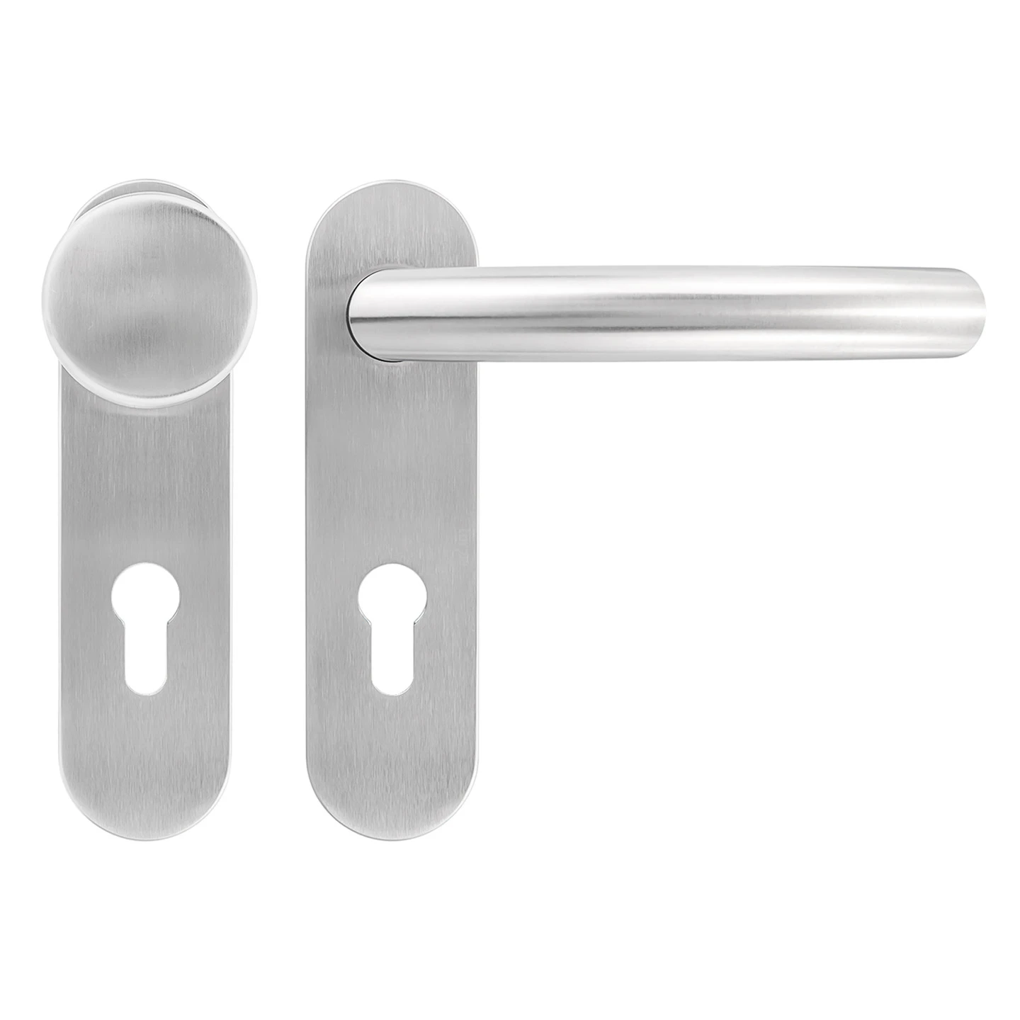 • Kurzschild u. Garnitur aus matt gebürstetem Edelstahl