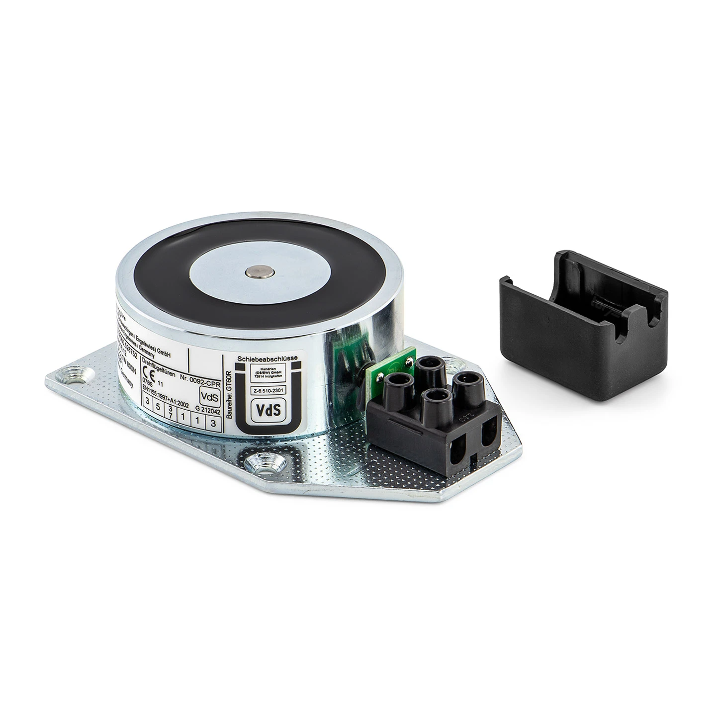 Der Teckentrup Türhaftmagnet für die Wand-/Deckenmontage ist eine Produktkomponente bei Feststellvorrichtungen und dient dem gezielten Offenhalten von Türen oder Toren mit Schließzwang, wie beispielsweise Brand- oder Rauchschutzabschlüsse. Der Elektromagnet kann hierbei als Ersatz für eine bestehende Anlage oder bei Neuausstattung mit einer Feststellanlage verwendet werden. In Kombination mit der auf dem Tor-/Türblatt montierten Ankerplatte wird eine magnetische Festhaltung erzeugt, die bei Raucherkennung des ins System integrierten Rauchmelders durch die Feststellanlagenzentrale aufgehoben wird und die vorgeschriebene Selbstschließungsfunktion ermöglicht. Weitere notwendige Komponenten für eine den Vorgaben entsprechende Feststellvorrichtung, wie die Teckentrup Feststellanlagen-Zentrale FSZ Basis 2.0, sind ebenfalls im Shop erhältlich.